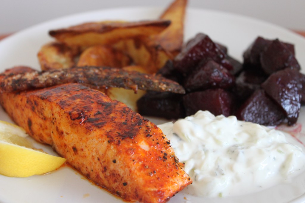 A Summery Salmon Feast Posted bycarolinefeeds16th Sep 2020Posted inMenusTags:balsamic, beets, lemon, potato wedges, potatoes, salmon, summer, summer food Part fish & chips, part Greek, part Swedish-inspired. A winning combination. Crispy Paprika Salmon Tzatziki Crispy Potato Wedges Balsamic Beets Share this: Click to share on X (Opens in new window) X Click to share on Facebook (Opens in new window) Facebook Like Loading... Related
