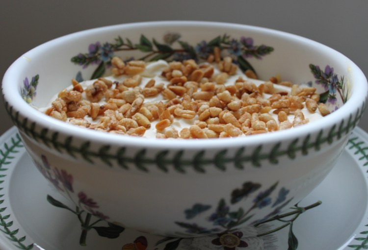 To make the caramelised pine nuts, add the pine nuts to a small frying pan and turn on to medium heat. Cook, tossing often, until you see the first sign of colour. Add the sugar and water, and keep cooking, stirring constantly. When the nuts are golden brown and coated in a crispy, sugary coating, remove from the heat and transfer the nuts to a waiting plate.