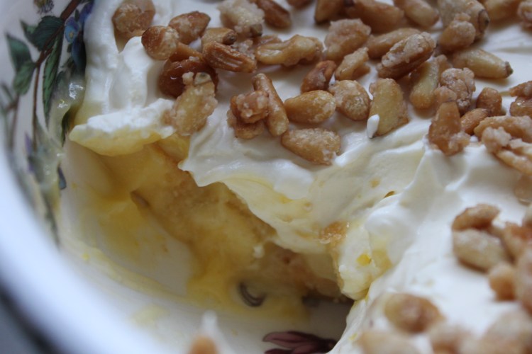 Next, add the lemon curd and smooth into an even layer. Next add the cream layer, spreading out to coat. Use the back of a spoon to create some attractive waves and texture to the top, then pop in the fridge, covered, for at least 6 hours, up to 2 days.
