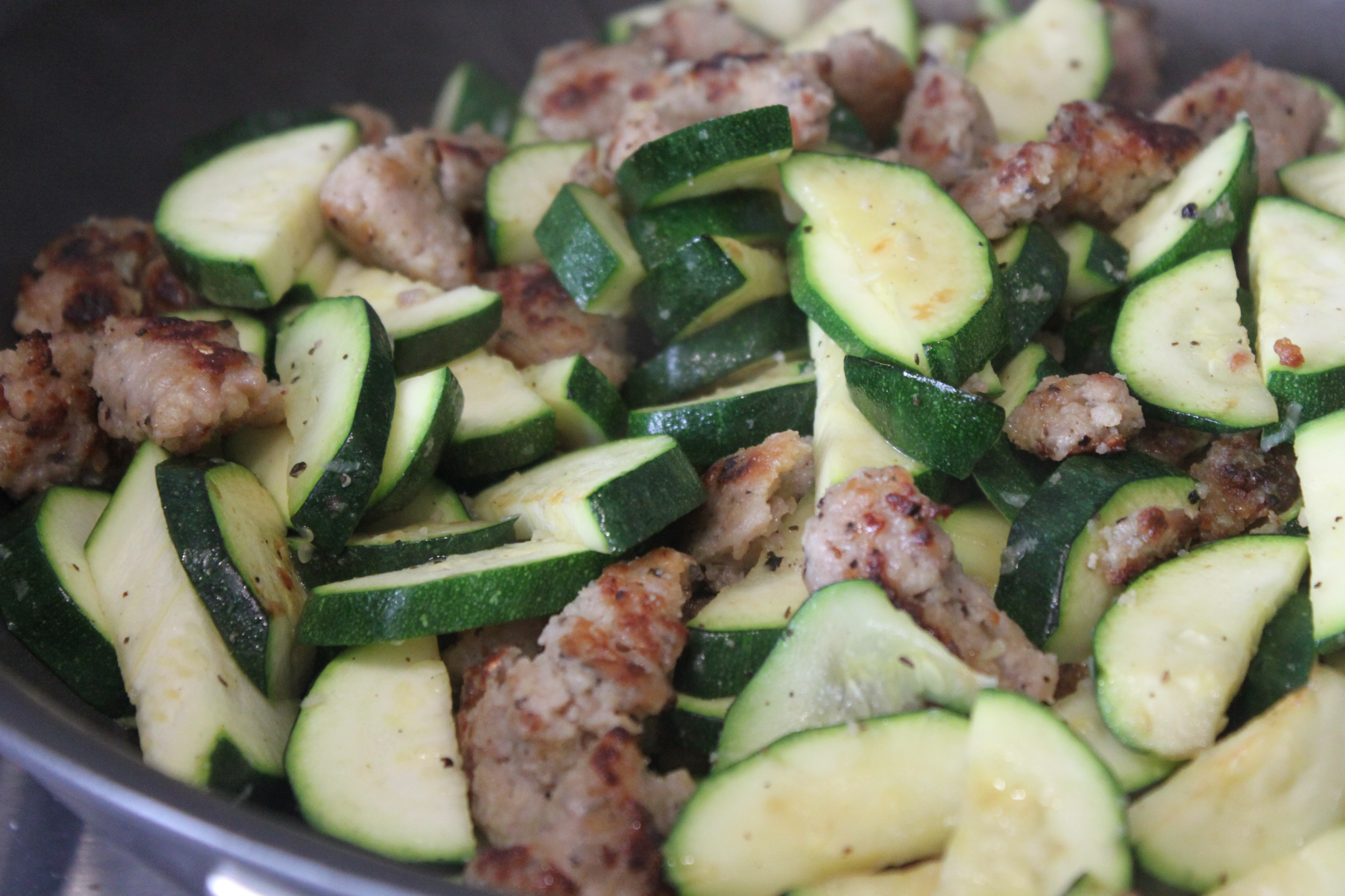 Place a large frying pan over medium heat. Add a drizzle of olive oil and the sausage meat, then use a wooden spoon to break it up. Cook until brown, stirring often and continuing to break up the meat.
